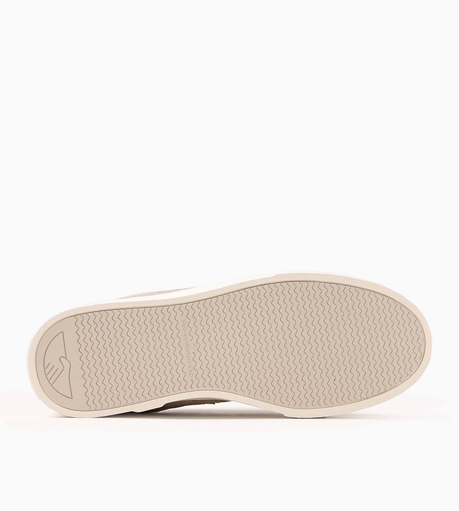 The Stepney Workers Club Pearl S-Strike Suede Sneaker in Natural/Taupe redefines court-inspired footwear with paneled suede uppers that exude understated sophistication. A padded nylon tongue complements the premium material, creating a balanced blend of texture and comfort. Lightweight cupsole construction and sidewall stitching enhance durability, ensuring these casual sneakers are built to last.