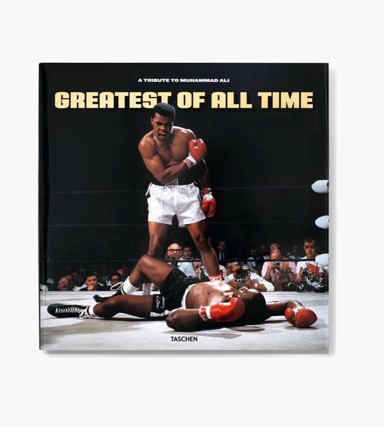 The Taschen hardcover "Greatest of All Time. A Tribute to Muhammad Ali" is a monumental coffee table book that commands attention with its impressive dimensions and weight. Revised and updated, this 652-page edition is a visual and tactile celebration of Ali's legacy, featuring thousands of images, including rare photography, art, and memorabilia. Its oversized format and premium construction make it a striking centerpiece for any collection.