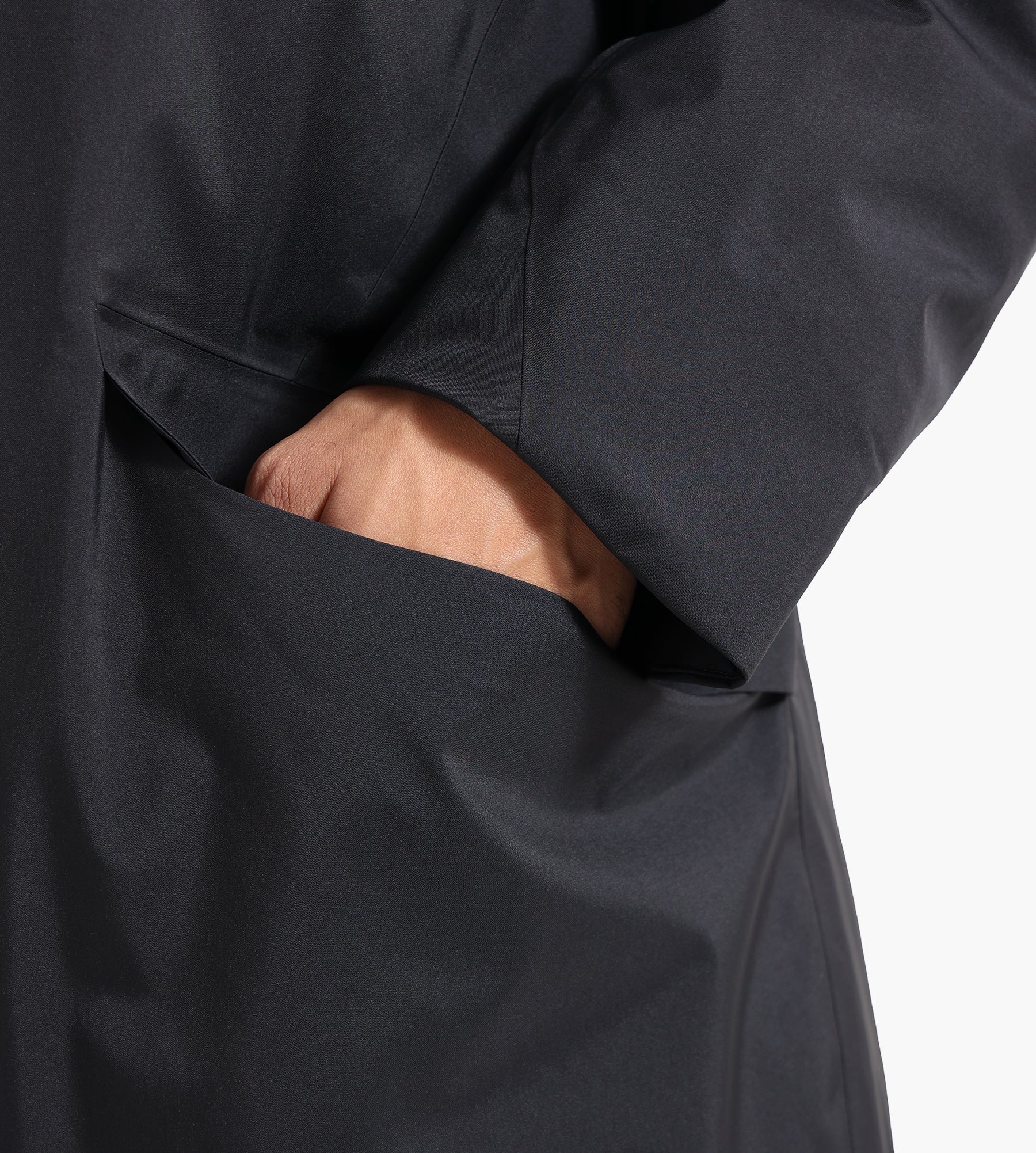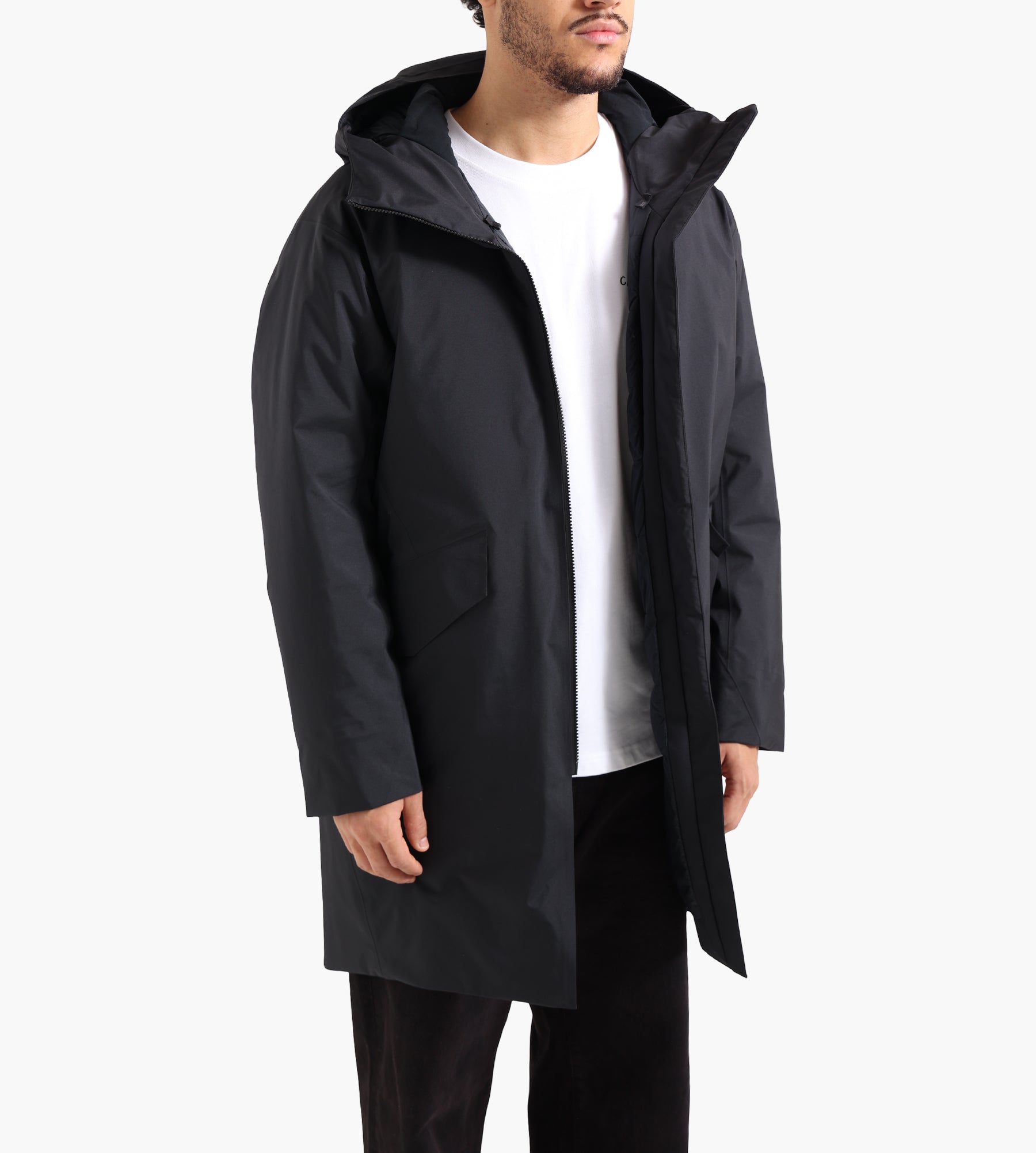 The Veilance Monitor Down Coat in Black is constructed from a 3-layer GORE-TEX Pro shell with a 70D plain weave, ensuring waterproof breathability and protection against harsh winter conditions. Insulated with premium European goose down at 850 fill power, it delivers superior warmth while maintaining a lightweight profile. A 20D micro rip-stop nylon lining with a DWR finish adds durability and moisture resistance.