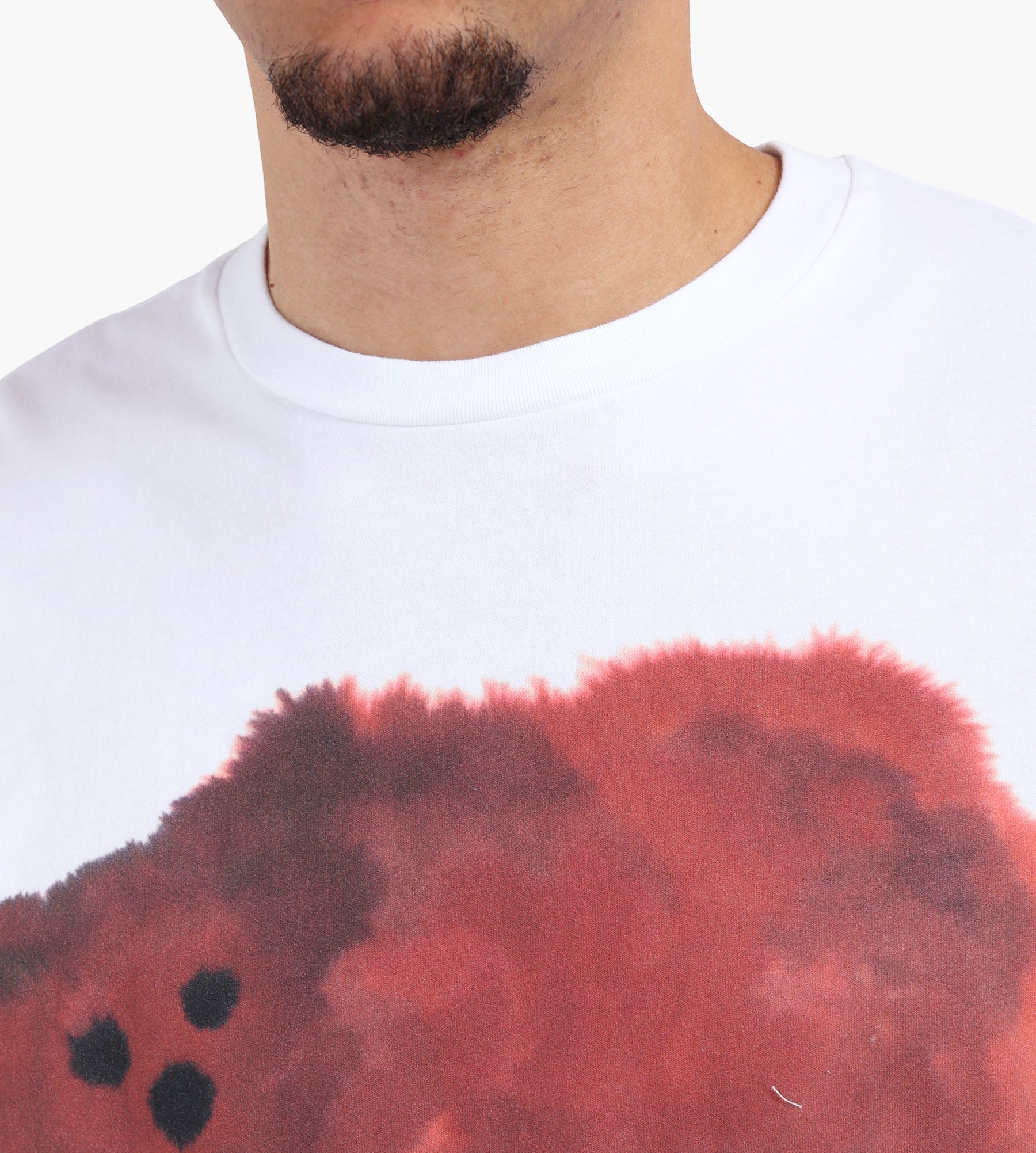 The Wild Animals Bear T-Shirt in White showcases a striking bear graphic designed by Rop van Mierlo, printed on a 100% organic cotton base. The GOTS-certified fabric is carbon-brushed for an ultra-soft feel, while the 180 GSM weight strikes a balance between durability and breathability.