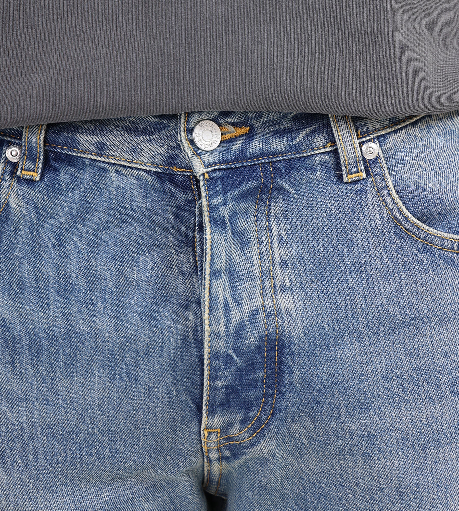 Designed with classic five-pocket styling, belt loops, and a button-fly closure, these jeans are finished with thoughtful details like a leather logo patch at the back waistband and logo-engraved silver-tone hardware. The organic cotton blend provides a soft yet structured feel that adapts comfortably over time.